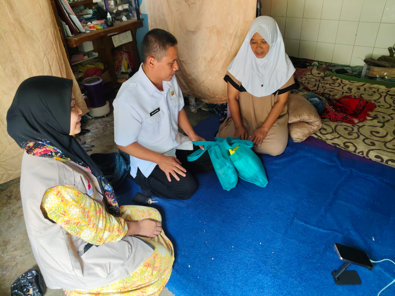 Bantuan tersebuat diserahkan kepada salah satu warga desa Pamokolan kecamatan Cihaurbeuti kabupaten Ciamis dihadiri langsung oleh tenaga sosial kabupaten Ciamis Iwa Kartiwa,S.E,S.H.